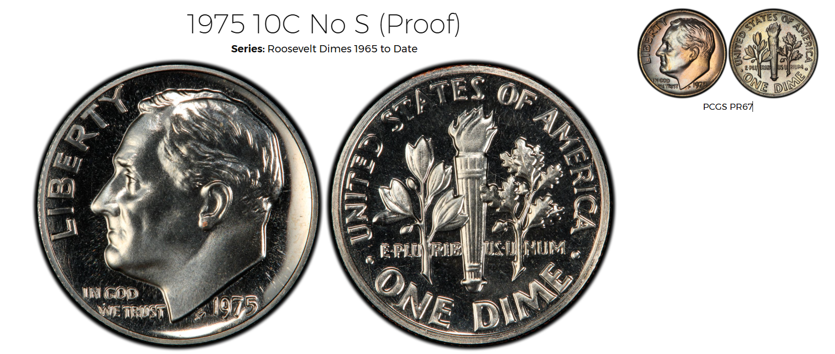 No Mint Mark: 조폐소 마크 없이 발행됨 → 1975 No-S 루즈벨트 다임 ($500,000+)