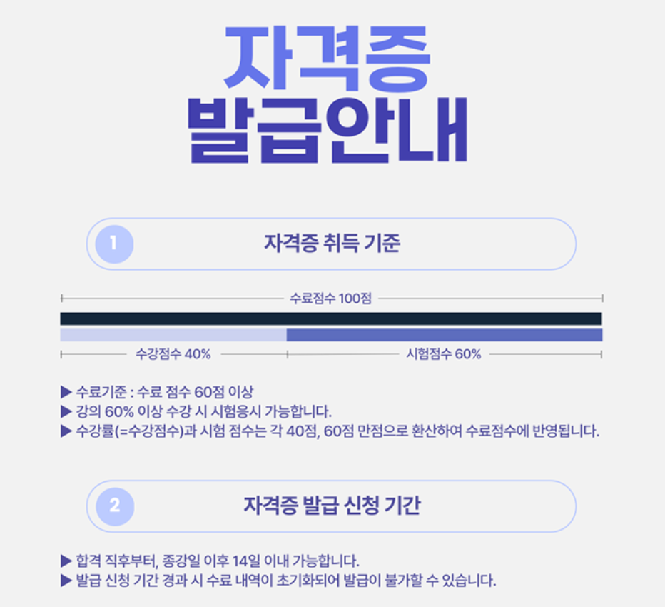 - 자격증 발급 완료! (상장형+카드형 제공)