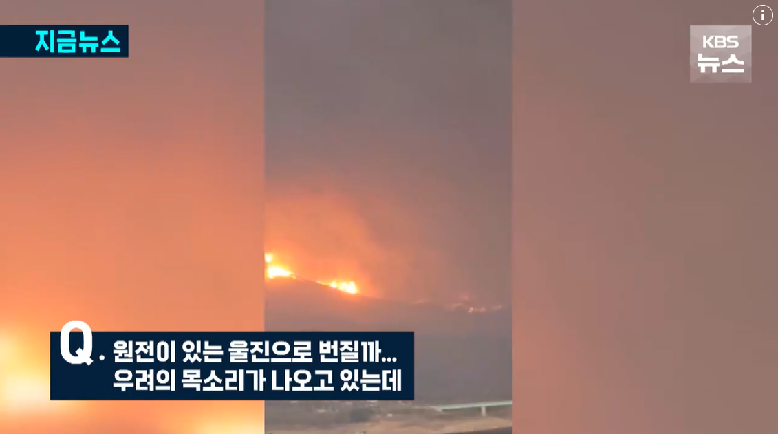 원전과 산불 발생 지점의 거리가 멀기 때문에 위험 요인은 크지 않지만, 강풍과 건조한 날씨가 지속되면 상황이 변할 수 있습니다.