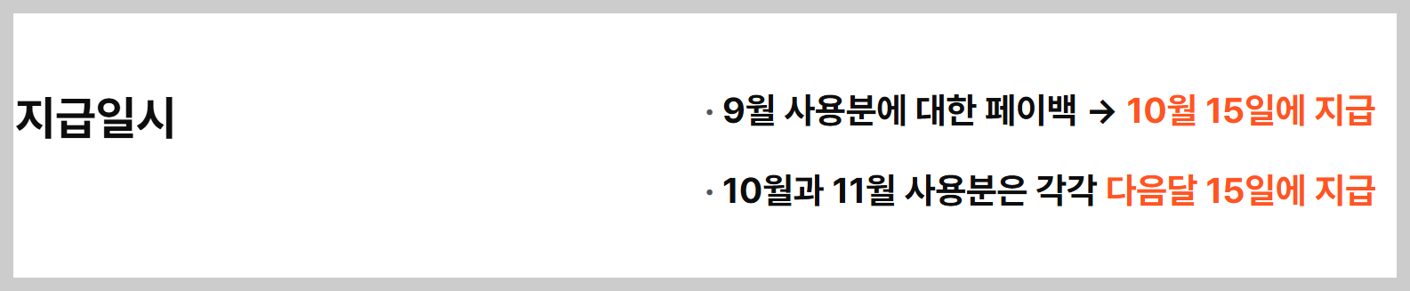 Q22. 11월에 페이백을 신청했는데 9~10월 실적에 대한 페이백도 받을 수 있나요?