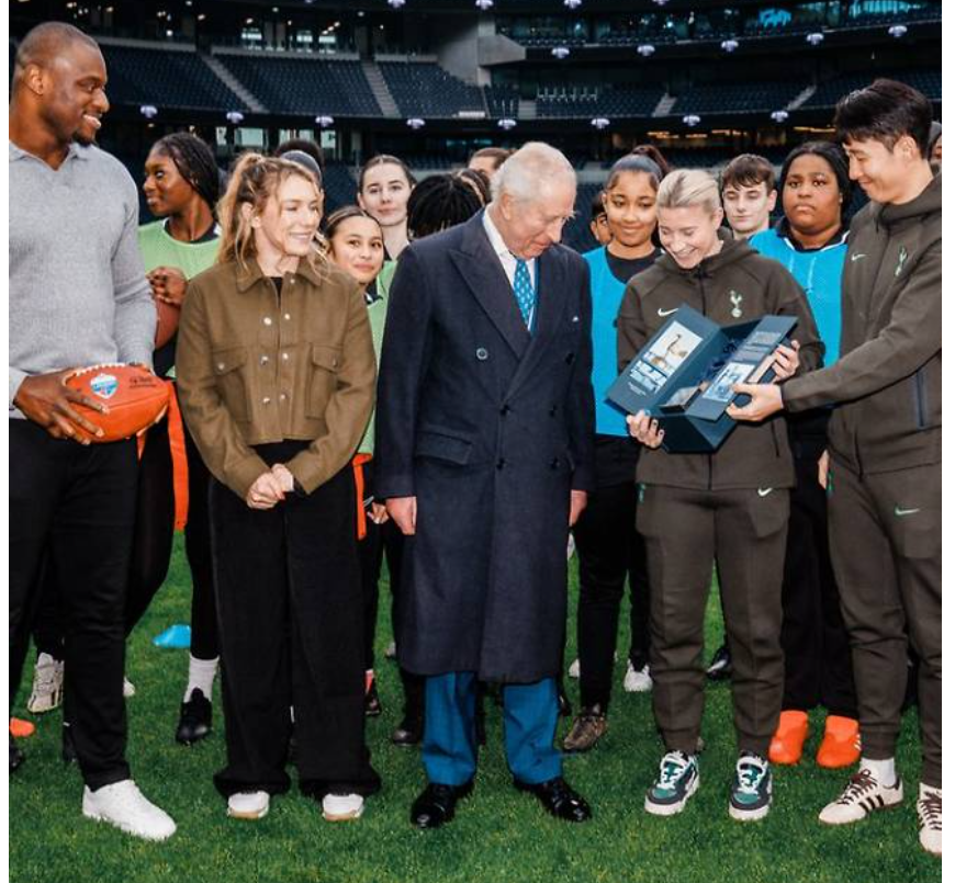 🔼2025년 2월 12일 영국 런던 토트넘 핫스퍼 스타디움을 방문한 찰스 3세 국왕(오른쪽)이 토트넘 주장 손흥민과 만나 악수하고 있다. <자료 : 토트넘 핫스퍼 공식 인스타그램> 🔼풋볼 런던은 최근 토트넘 홋스퍼의 손흥민 선수가 영국의 찰스 3세 국왕과 만남을 가졌다고 보도했다. 🔼이 만남은 토트넘 홋스퍼 스타디움에서 이루어졌으며, 손흥민과 토트넘 여자팀 주장 베서니 잉글랜드, 그리고 다니엘 레비 클럽 회장이 함께 참석했다. 🔼찰스 3세의 방문 목적은 NFL을 영국에서 홍보하기 위해 토트넘과 NFL(미국 프로 풋볼 )이 후원하는 지역 아동 지원 사업을 격려하기 위함이었다. 🔼찰스3세 왕은 이와 관련한 허들 프로젝트의 시연을 관람했다.