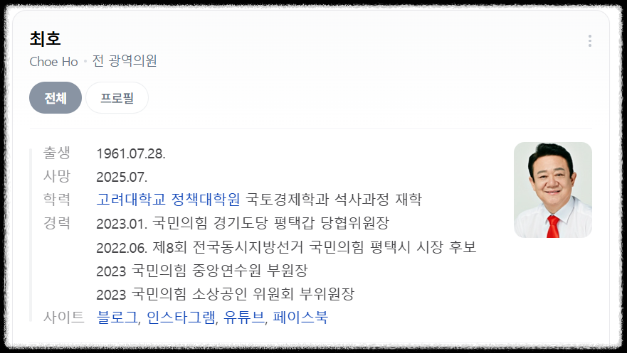 ⚰️ 2. 최호 전 의원의 사망…정치 구조의 희생자?
