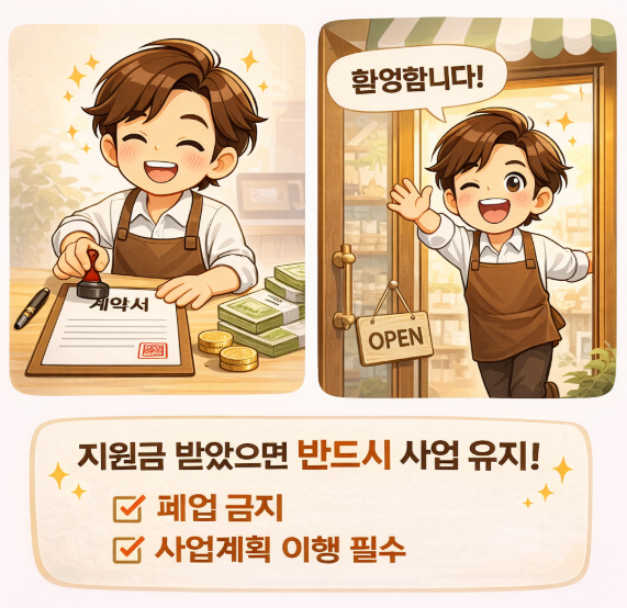 📌 어렵거나 까다로운 조건은 아니며, 성실히 사업을 이어가면 충분히 지킬 수 있는 조건입니다.